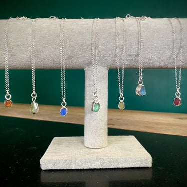 I will work with you to choose your perfect piece of sea glass and design, to be crafted in 100% recycled silver and fine silver. If you have a specific colour and size in mind I will do my best to accommodate this.
